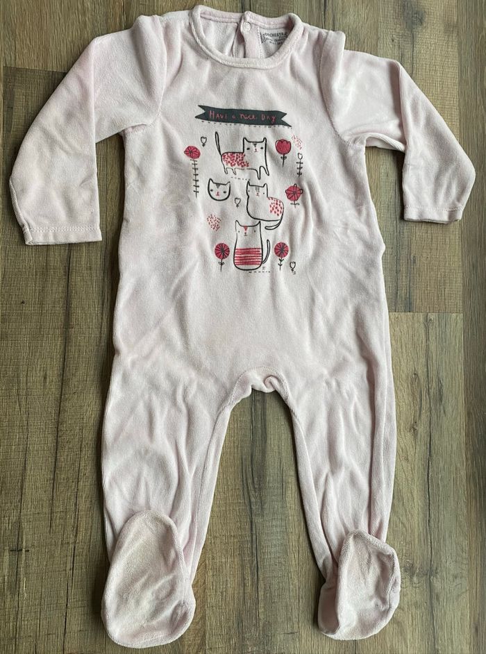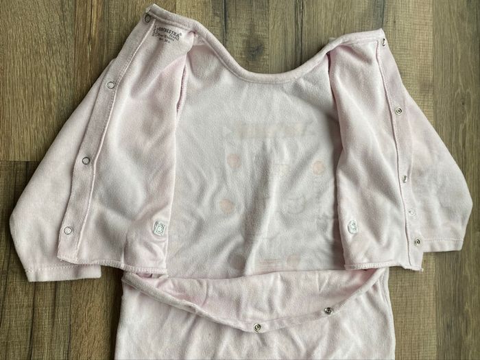 Pyjama Sans tache Ouverture dans le dos en 2 temps avec 7 pressions 3 pressions ouverture fesses 4 pressions le dos 23 mois. Dessin non abîmé voire photo 53% polyester 47% coton