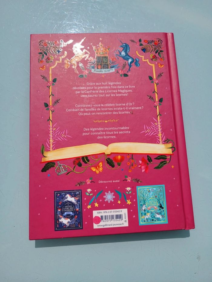 LE GRAND LIVRE DES LICORNES LA LICORNE D'OR SECRETS ET LÉGENDES Grâce aux huit légendes dévoilées pour la première fois dans ce livre par la Confrérie des licornes magiques, vous saurez tout sur les licornes! Connaissez-vous la célèbre licorne d'or? Combien de familles de licornes existe-t-il vraiment? Où peut-on rencontrer des licornes? Des légendes incontournables pour connaître tous les secrets des licornes. Très bon état Mes livres par thèmes : #livrelicornesmooglou Mes autres livres enfants : #livreenfantmooglou