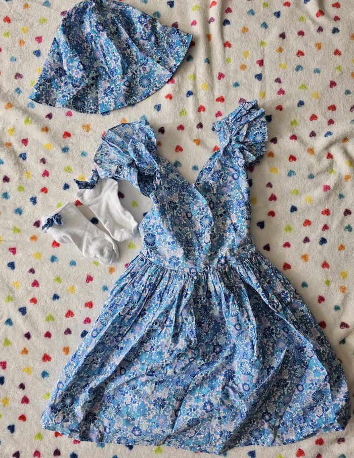 jolie robe liberty de la marque jacadi taille 6 ans avec chaussettes et chapeau Pour voir tout mon 6 ans tapez dans la barre de recherche #6ansfillelili29217