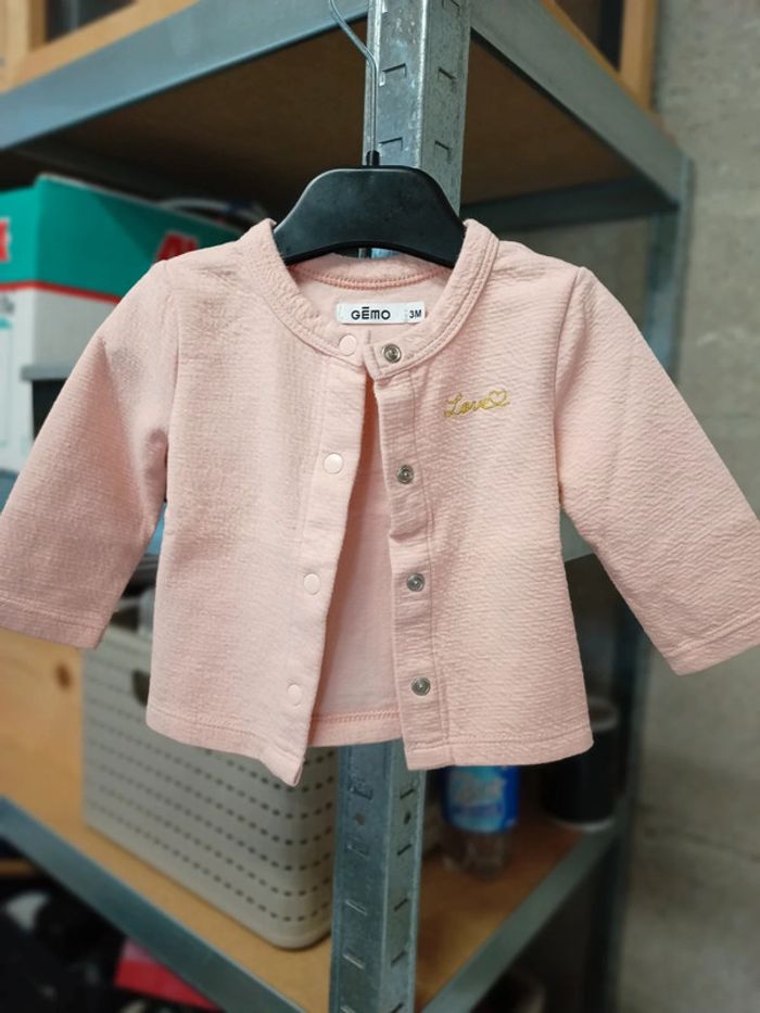 Chemise col claudine 3 mois + gilet rose poudré Porté 1x acheté neuf Réductions activées sur les lots 📌
