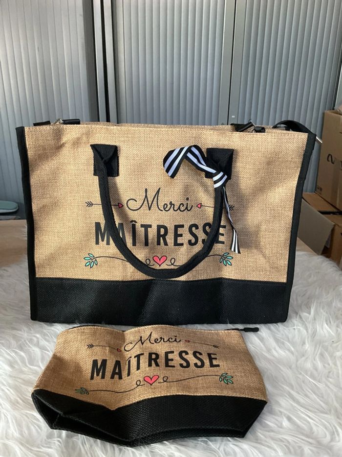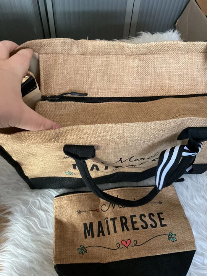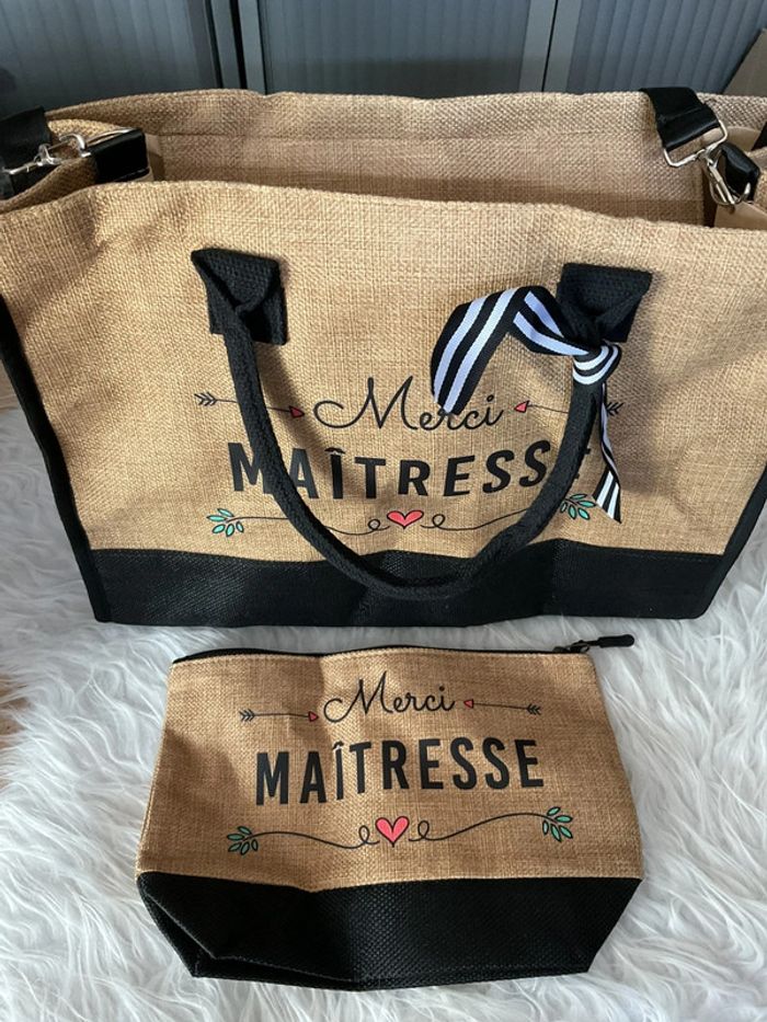 Je vends ce sac fourre tout et pochette « merci maîtresse » (fermeture a zip avec bandoulière)
