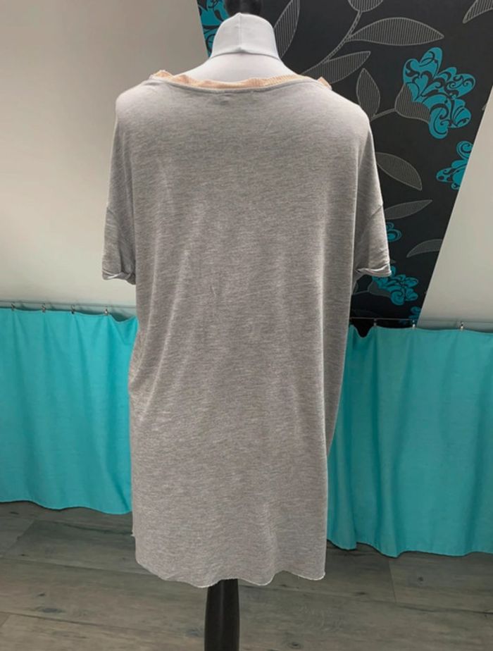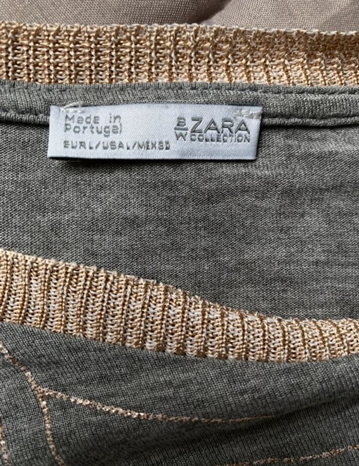 T-shirt Zara : taille 40-42 (plutôt 42 même si noté L) très bon état. Couleur gris fils dorés 🌸 Pour les ventes 40/42/44 cliquez ici #grandetaille_loena38 👚