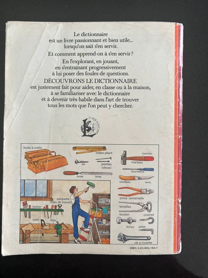 découvrons le dictionnaire. Livre vierge avec les solutions . Larousse des débutants 1981 . Cahier d’exercice vintage