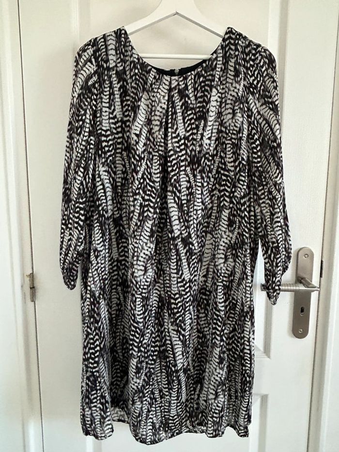Robe H&M taille 44 en très bon état thème plume blanche et noire