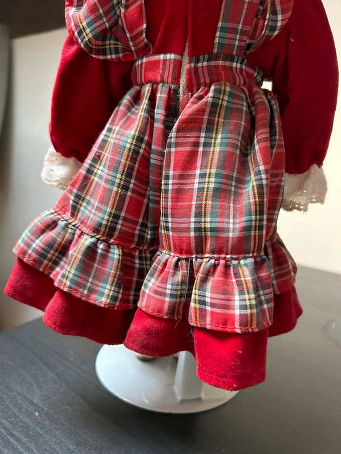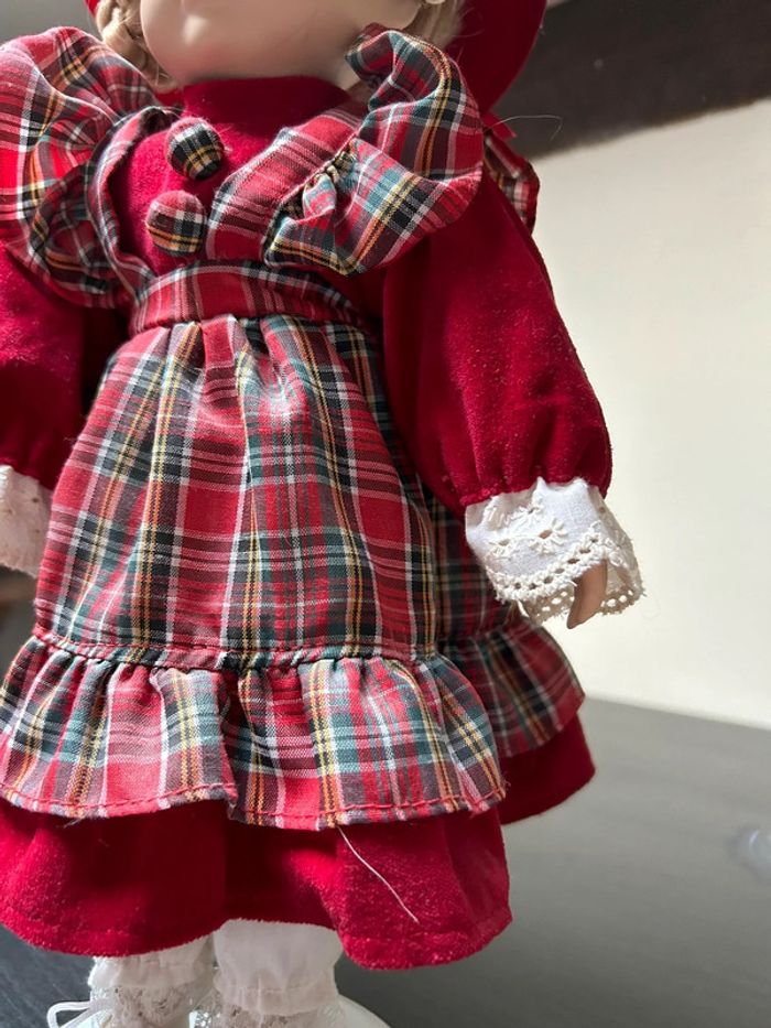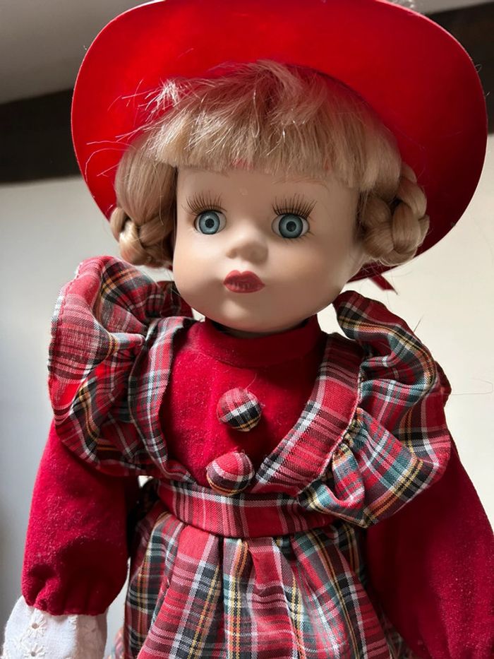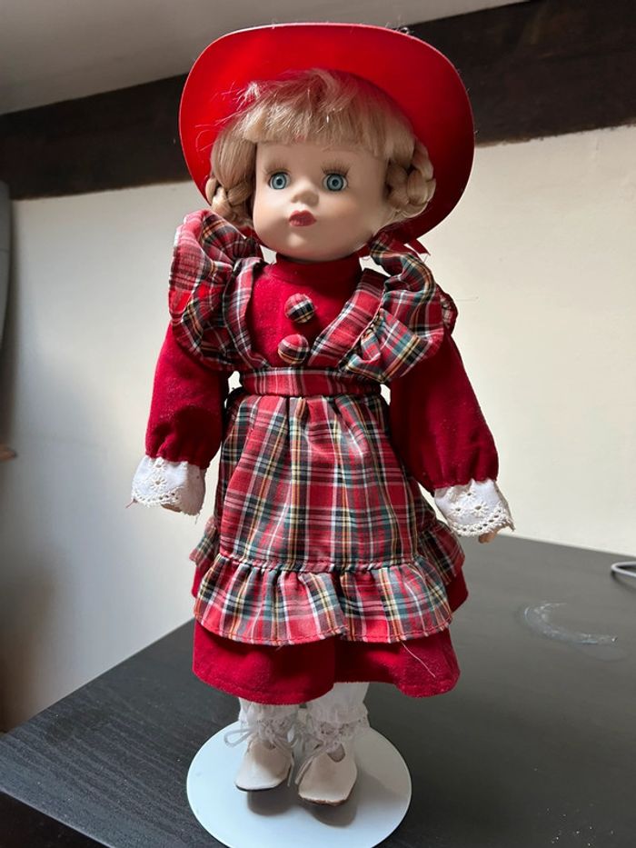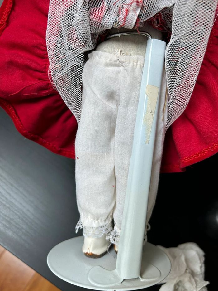 Poupée en porcelaine rouge avec chapeau en bon état vêtement blanc un peu jauni 35cm 🌸 pour les articles vintage (ayant plus de 20 ans) cliquez ici #vintage_loena38💫 🌸 pour les jeux jouets cliquez ici #jouet_loena38 🧸