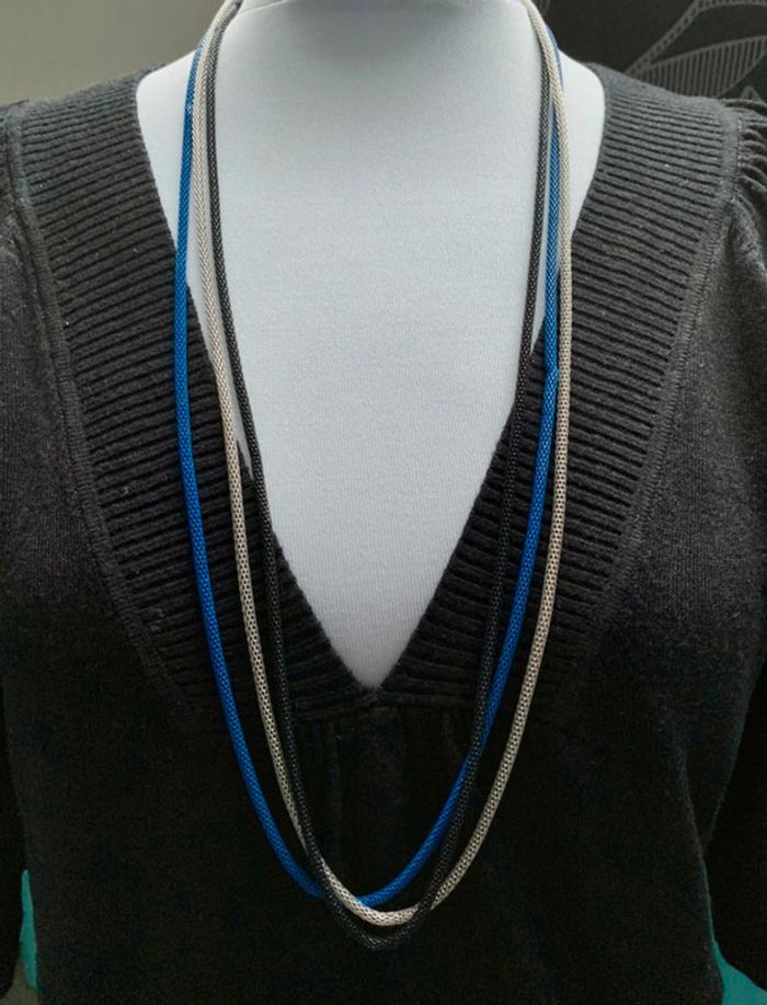 Collier 3 branches bon état bleu noir argent 🌸 pour les accessoires sac cliquez ici #accessoiresbijoux_loena38 🕶️ 👜 💍