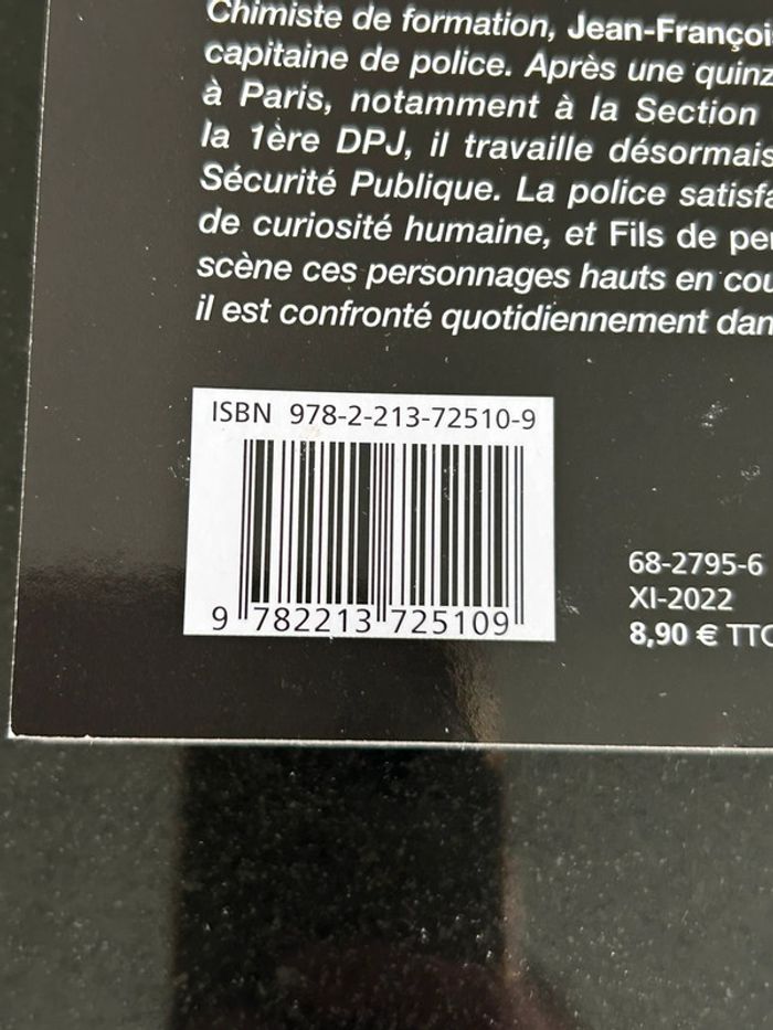 Jean-Francois Pasques Fils de PERSONNE Très bon état Résumé Un numéro de téléphone, un exemplaire de La Peau de chagrin et un briquet de la Légion étrangère. C’est tout ce qui est retrouvé sur le cadavre d’un homme abandonné dans un bassin du jardin des Tuileries. Alors qu’il piétine déjà dans une enquête sur la disparition de trois jeunes femmes, le commandant Julien Delestran est chargé de l’affaire. Le numéro de téléphone est sa première piste : c’est celui du CNAOP, l’organisme permettant aux enfants nés « sous X » de retrouver leurs parents biologiques. Mais tandis que le commandant essaie d’avancer sur cette nouvelle enquête, la précédente se rappelle à lui quand sa hiérarchie lui adjoint l’aide d’une psychologue. Tout d’abord sceptique face à cette « ingérence », Delestran est bien obligé de reconnaître que Claire Ribot sait mettre au jour la vérité aussi bien que le plus fin des limiers. Et qu’elle ne sera pas de trop pour sonder, avec son groupe, les tréfonds de l’âme humaine… Chimiste de formation, Jean-François Pasques est capitaine de police. Après une quinzaine d’années à Paris, notamment à la Section Criminelle de la 1ère DPJ, il travaille désormais à Nantes en Sécurité Publique. La police satisfait son appétit de curiosité humaine, et Fils de personne met en scène ces personnages hauts en couleurs auxquels il est confronté quotidiennement dans son métier. 🌸 pour voir mes autres livres cliquez ici #livres_loena38 📕