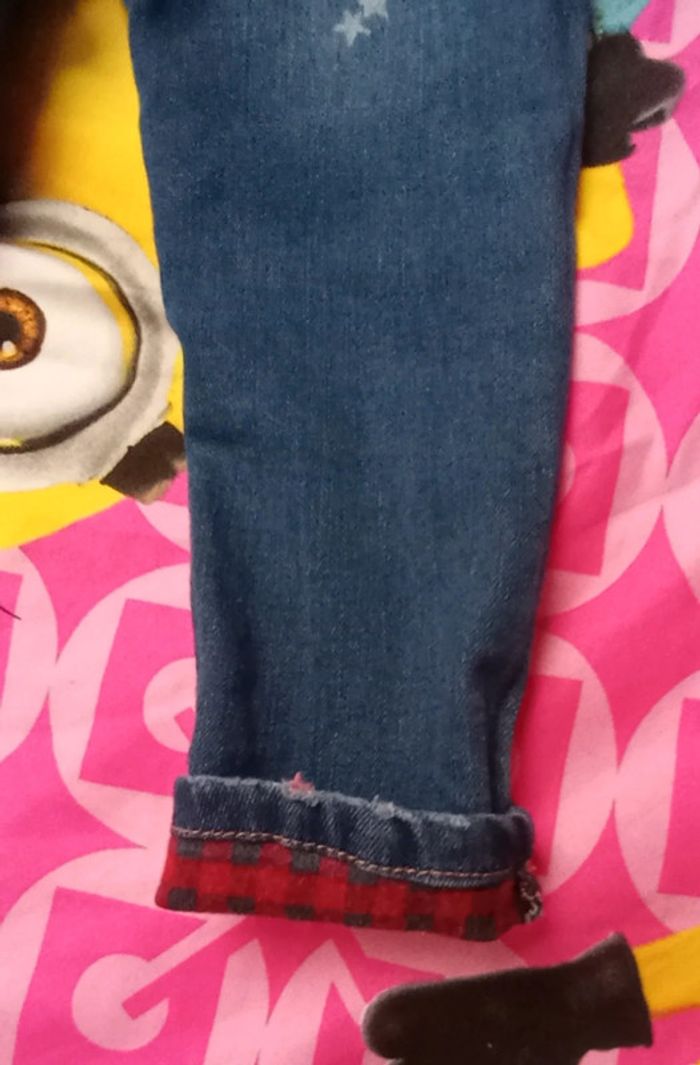 Jean's Zara bleu, avec décorations étoiles intérieur à carreaux 18 à 24 mois 92 cm Très joli, usé dans le tout tout bas de jambes 100 pourcents coton