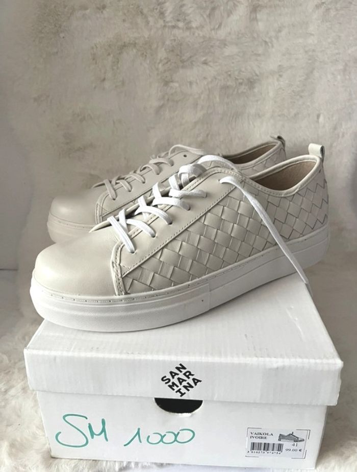 Baskets en cuir ivoire vaikola san Marina pointure 41 Neuve, référence inscrite au feutre sur l’une des deux semelles voir dernière photo