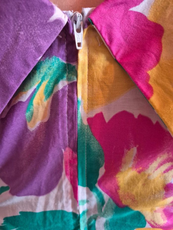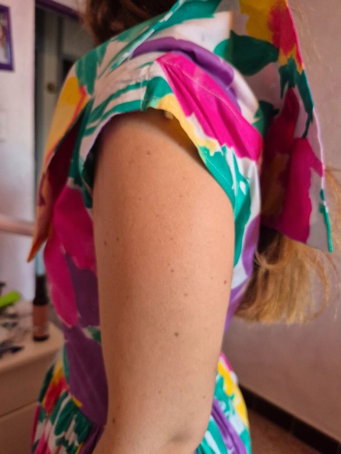 Robe multicolor acheté dans une boutique indépendante, la taille est du SM je n'ai plus l'étiquette donc voici les mesures a plat (sachant que je porte habituellement du S M et je mesure 1m50) Épaule à épaule 28cm Taille 35.5cm Longueur 100.5cm Doublure comme un jupon Fermeture eclair sur le côté Plus d'étiquette pour la matière désolé. #papillonduvarrobe #papillonduvarfemme