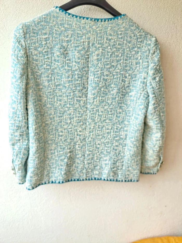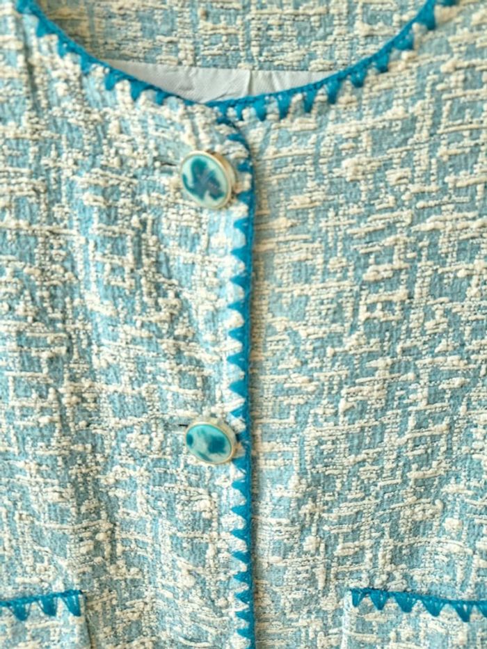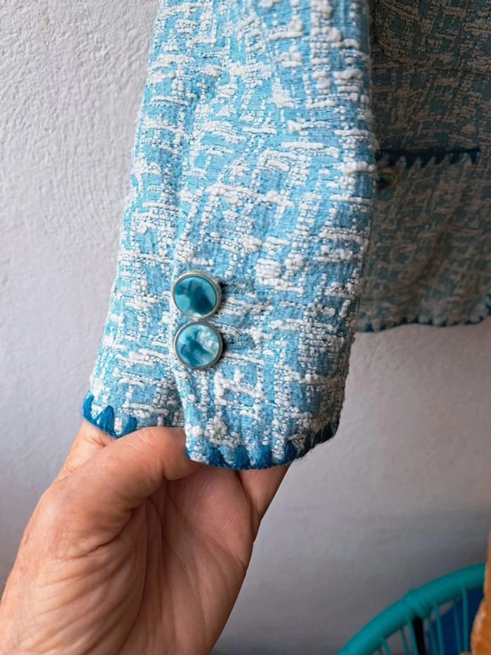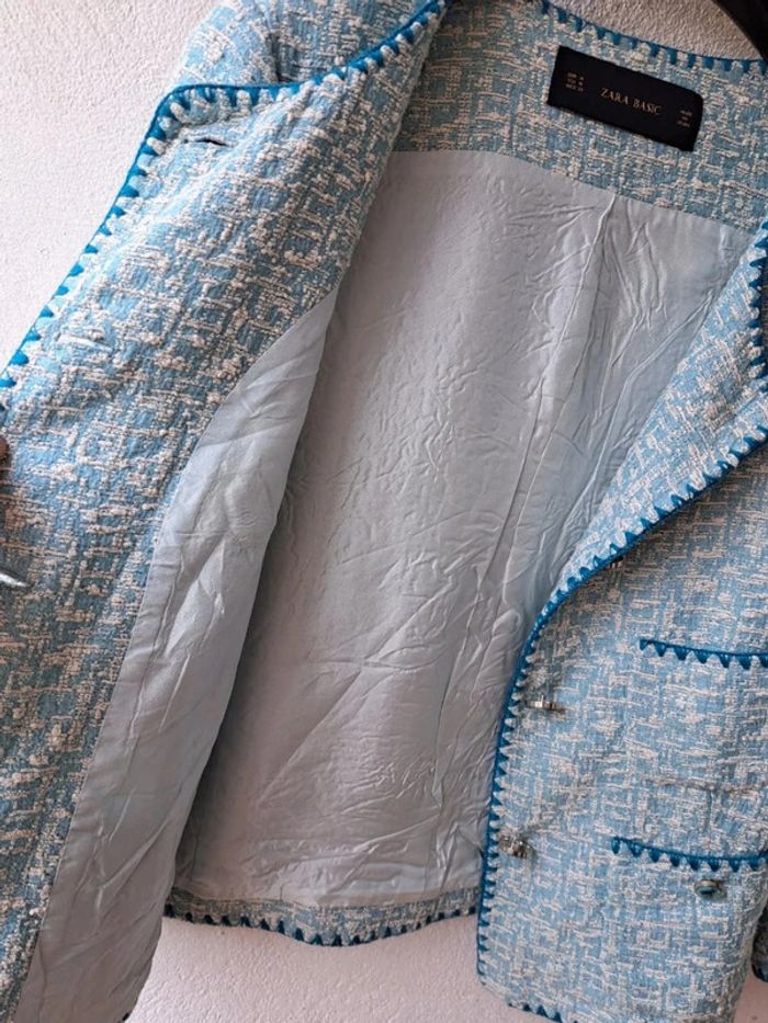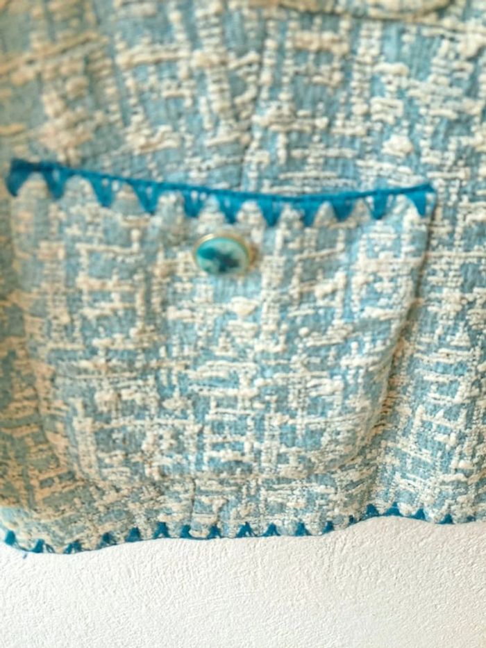 Veste blazer bleu ecru constrate broderie - photo numéro 8