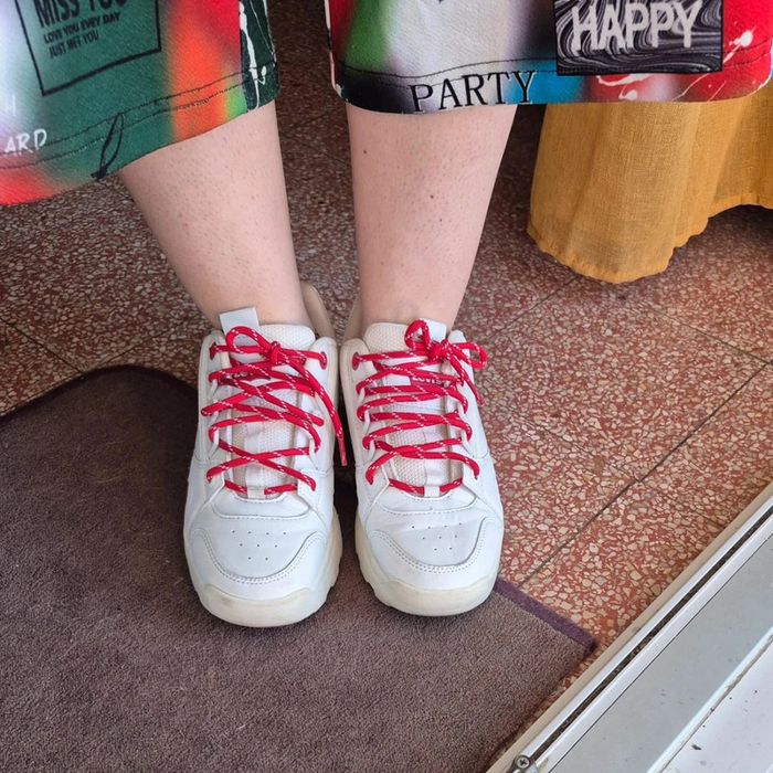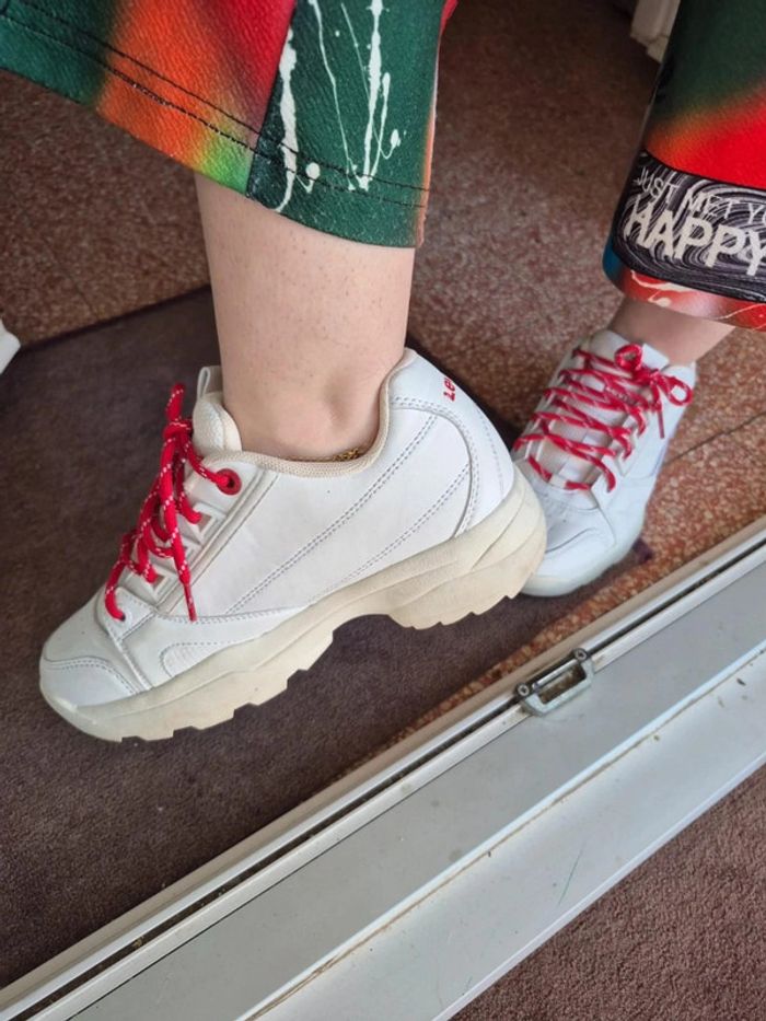 Basket blanche et rouge à lacet - photo numéro 1