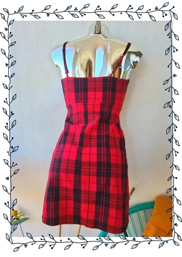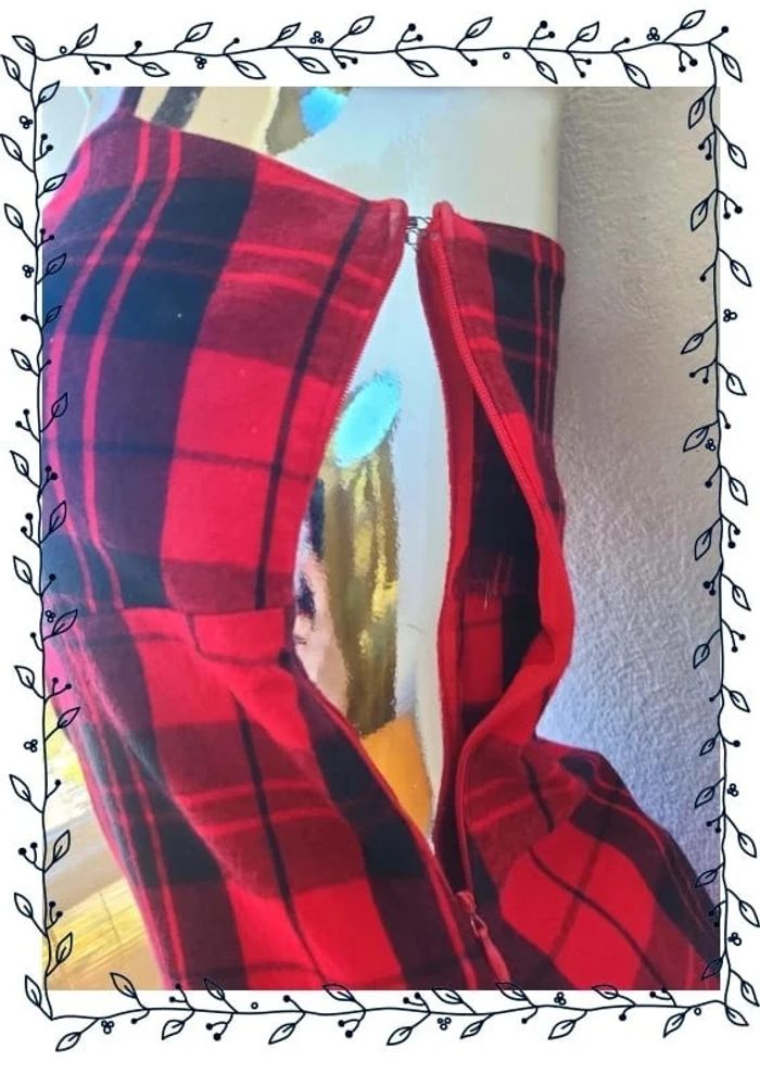 Robe à carreau avec une fermeture éclair sur le côté avec son petit crochet. Petit défaut en haut de la fermeture un peu blanc la couleur est partie. Bretelle ajustable. #papillonduvarrobe #papillonduvarfemme