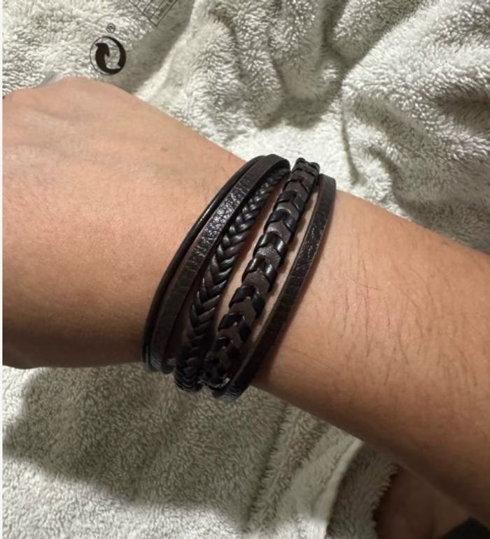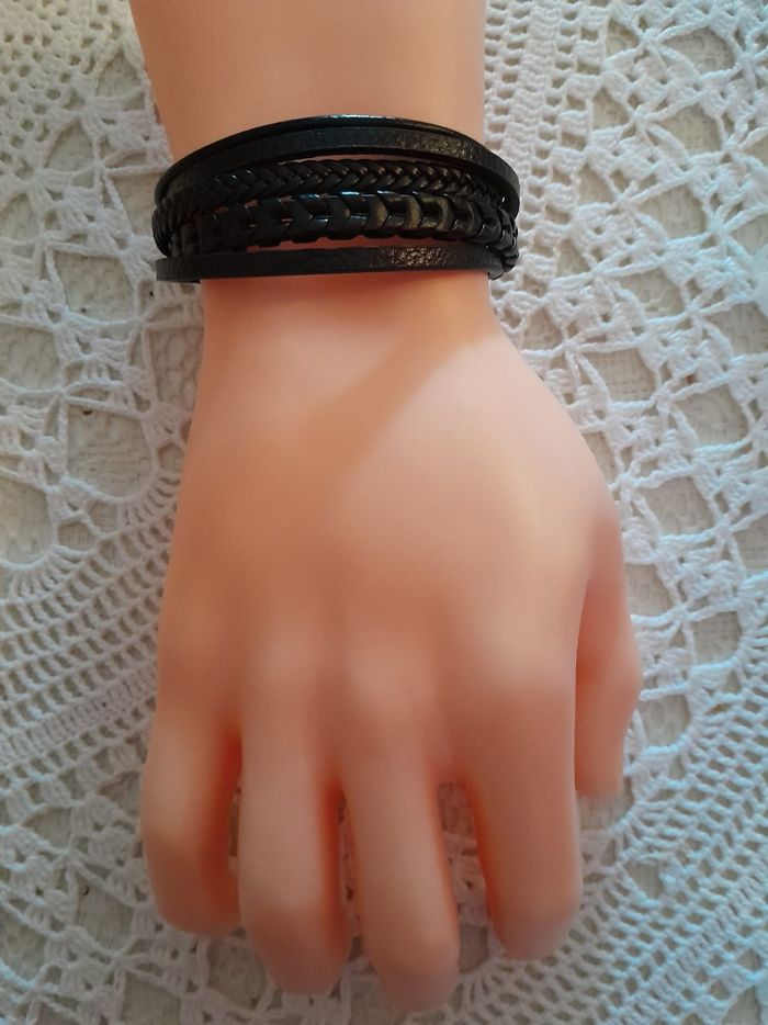 Bracelet tressé en corde de cuir noir diamètre 56/ 58  mm - photo numéro 4