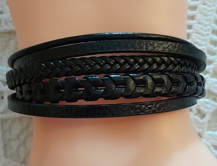 Bracelet tressé en corde de cuir noir diamètre 56/ 58  mm - photo numéro 1