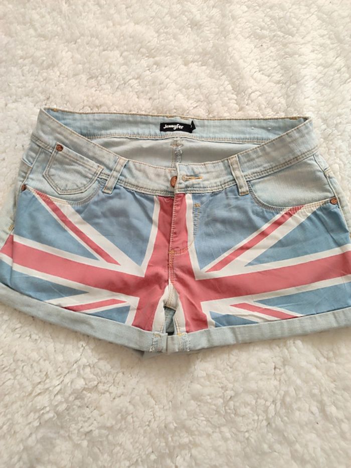 ✓Short Jennyfer ✓ Taille 40. ✓ Le dos en jean, face avec le drapeau anglais ✓ En très bon état Pour faire des lots (réductions activés) #shadowstonemL