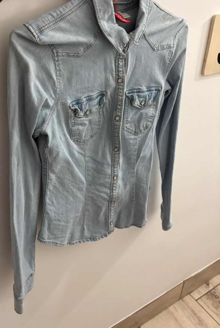 Jolie chemise en jeans clair. Ajustée. Taille 34/XS. Comme neuve.