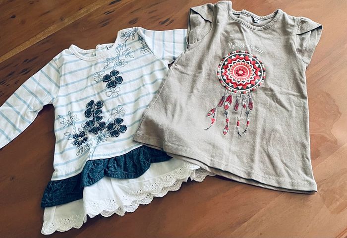 Lot de 2 tuniques (plus long qu’un tee shirt plus court qu’une robe.) 1 en manches courtes l’autre manches longues. Parfait état.
