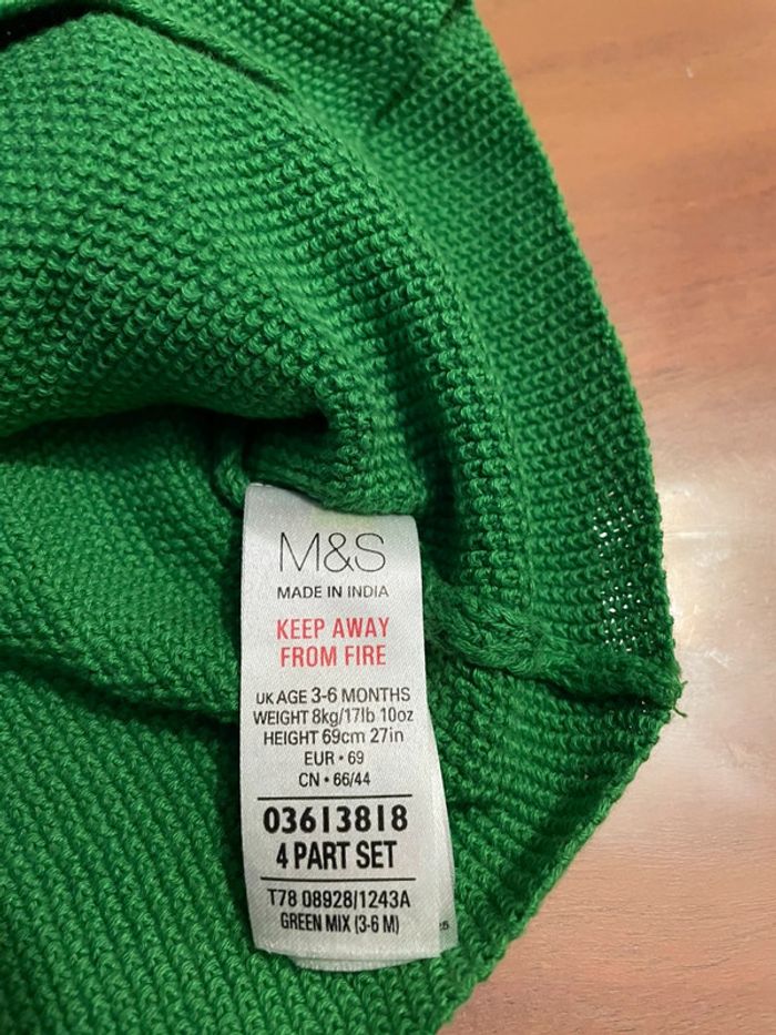 Gilet vert. 3/6 mois. (Taille plus 6 mois) Marque M&S. Très bon état .