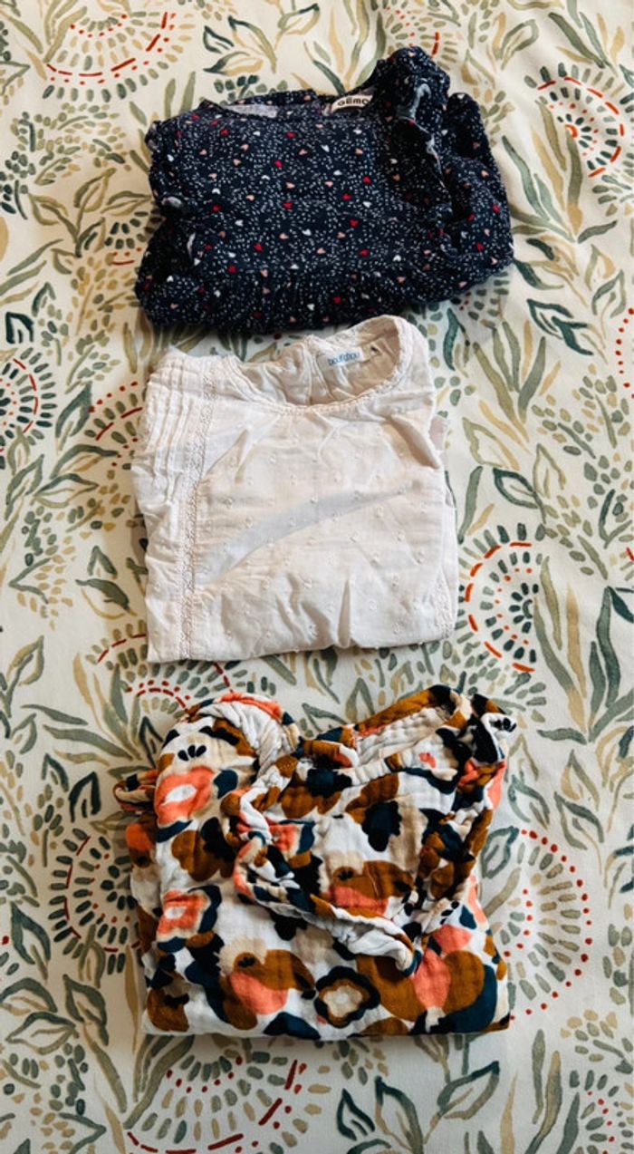 Lot de 3 chemisiers/chemises. Taille 24 mois. Marque Gemo et Bout’chou. Excellent état.