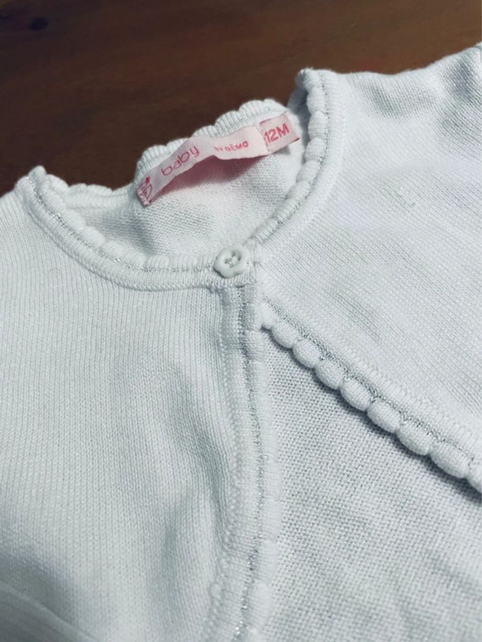 Gilet court / Boléro. Blanc fil argenté. Taille 12 mois de chez Gemo. Comme neuf.