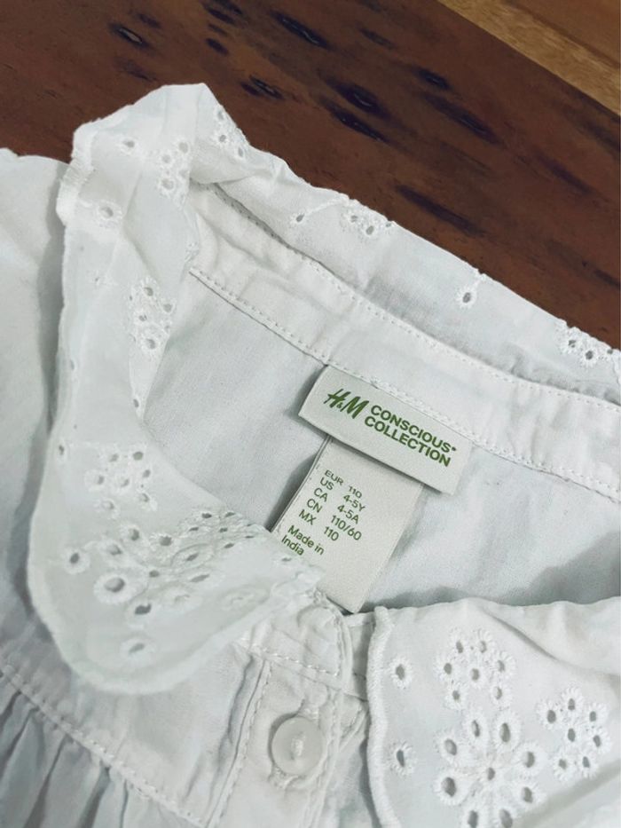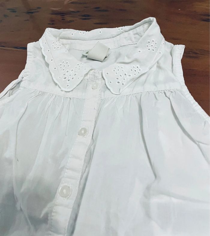 Chemisier blanc sans manches, col dentelle. Et noeud sur le bas. 4/5 ans de chez H&M. Très bon état.