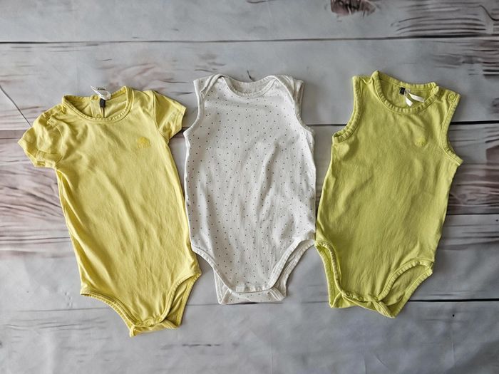 Lot de 3 bodies TAO / ORCHESTRA Taille 23 mois Couleurs jaune / vert / blanc cassé État : fidèle aux photos 🚭 maison non fumeur