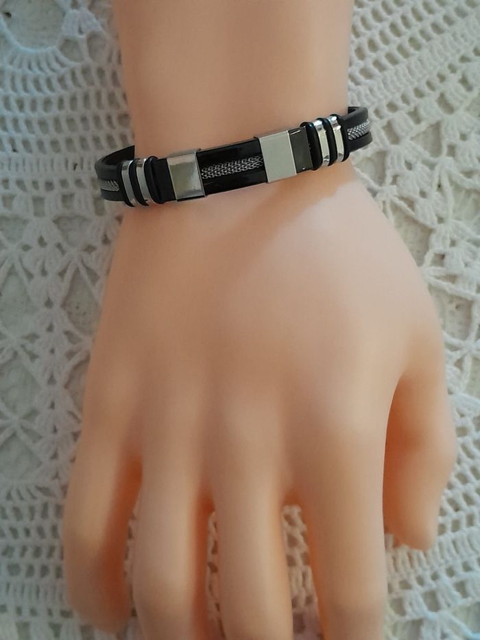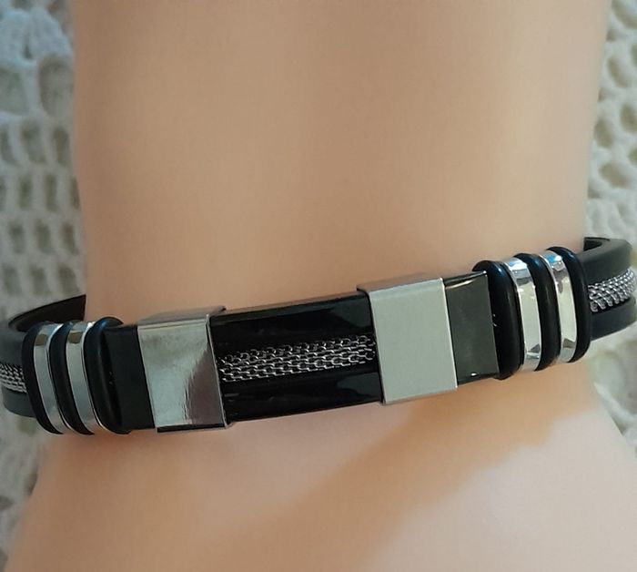 Bracelet en acier inoxydable bracelet  pour hommes punk à maillon en silicone rainure noir - photo numéro 1