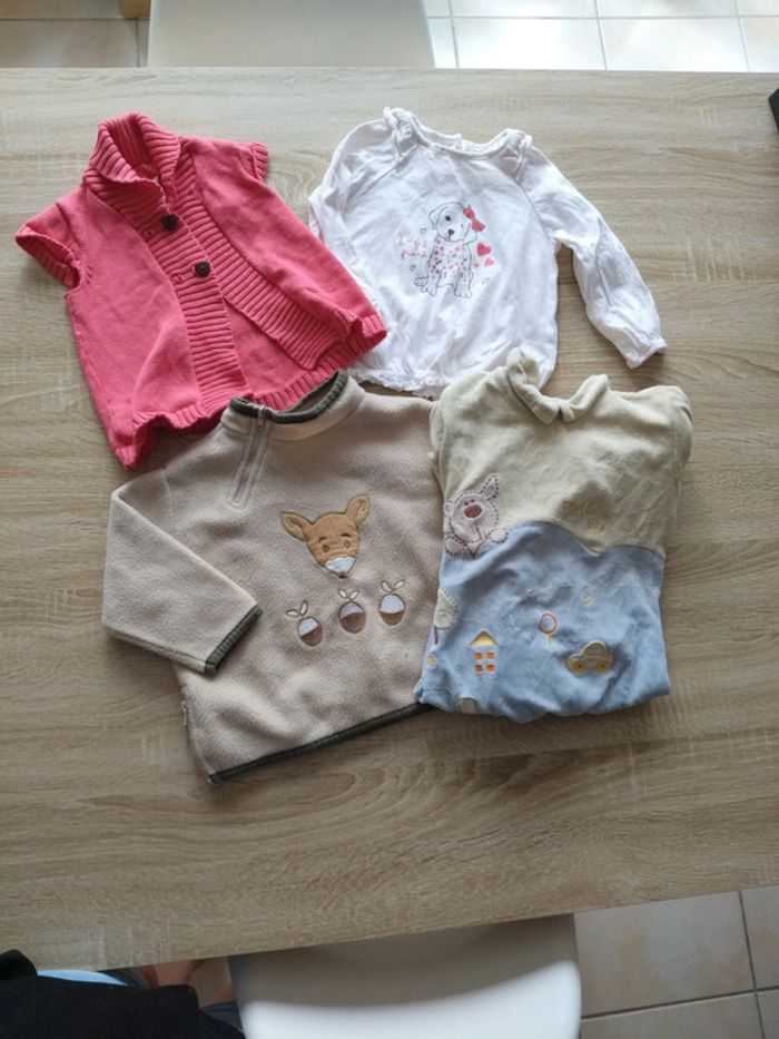 Lot 18 mois 1 grenouillère 1 polaire 1 haut manches longues 1 gilet sans manches
