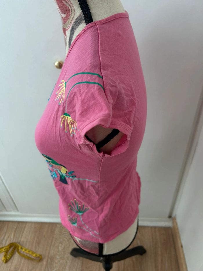 T-shirt rose avec paillettes dessin perroquet en coton - photo numéro 5