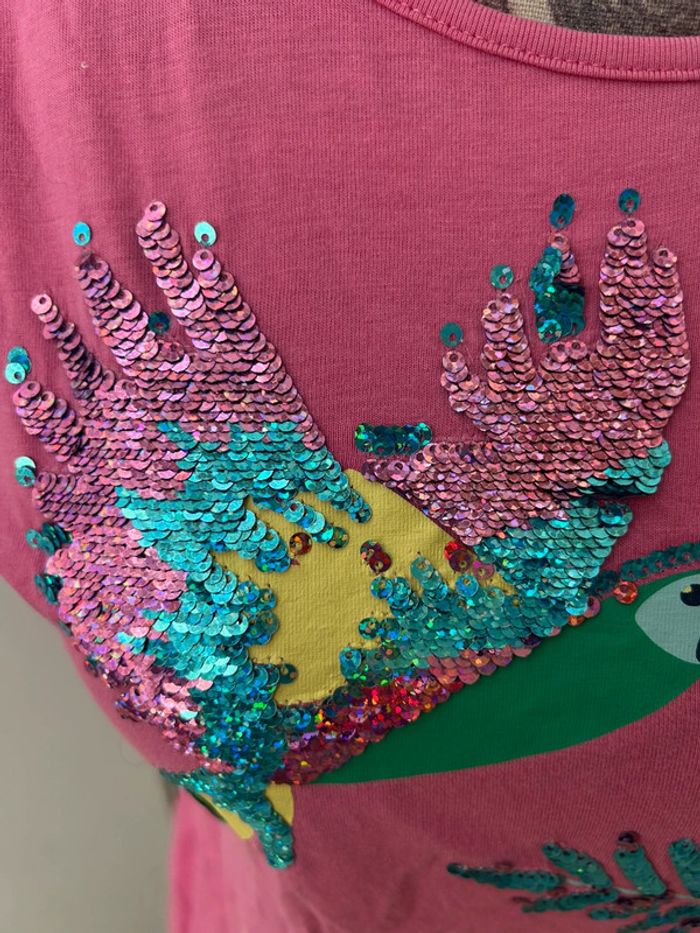 T-shirt rose avec paillettes dessin perroquet en coton - photo numéro 6