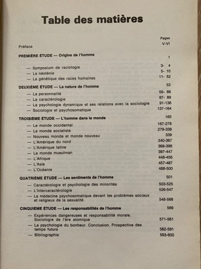 ancien livre de 1971 600 pages Noter que il y a une petite déchirure sur la couverture arrière ( cf photo ) Le livre est découpé en 5 études : > origine de l'homme > La nature de l'homme > L'homme dans le monde > Les sentiments de l'homme > Les responsabilités de l'homme #psychanalyse #psychologie #psychologue #peuples #originedelhomme #guydingemans #medecinedeparis #lausanne #étudeuniversitaire