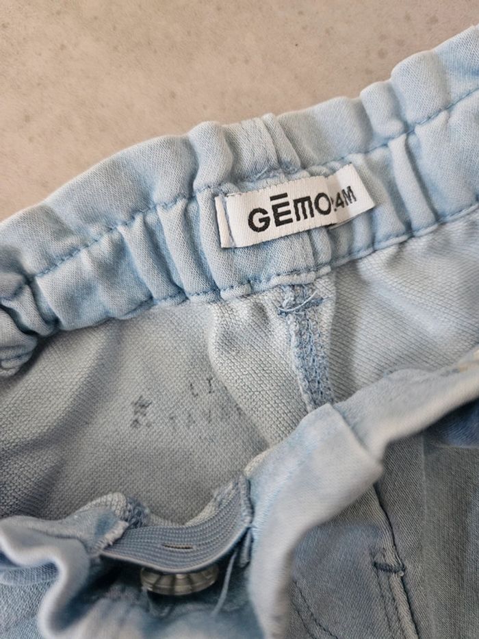 Merci de bien lire la description 👉 Short bleu clair très léger, parfait pour l’été ☀️ Taille : 24 mois Marque : Gémo Taille réglable grâce à un élastique intérieur. Bon état général, confortable et pratique. ⚠️ Le prénom de l’enfant est inscrit au tampon à l’intérieur (estompé, moins visible qu’à l’origine), à bien noter. Idéal pour la crèche, la maison ou les vacances. N’hésite pas à me contacter pour plus de détails !