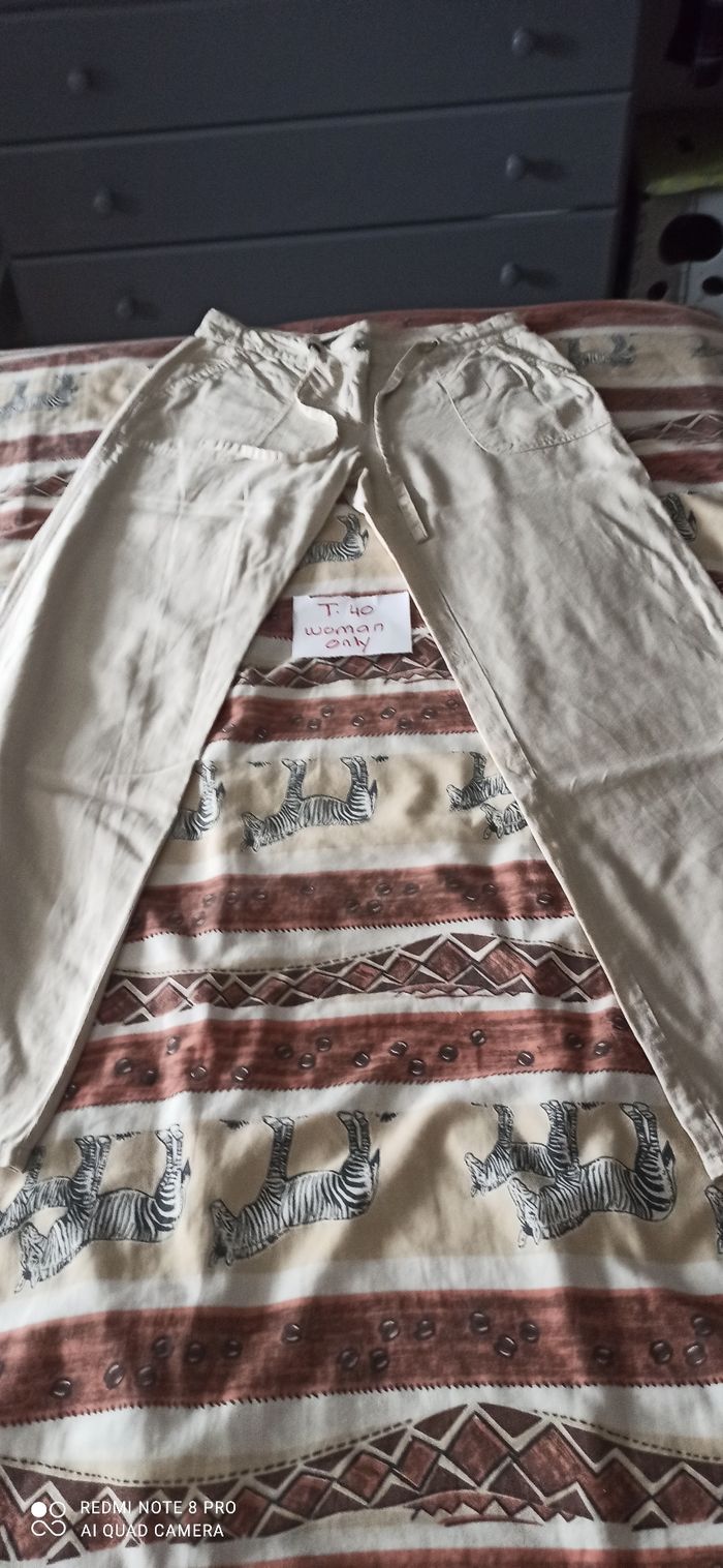 Vends un pantalon beige coupe large t. 40 woman only