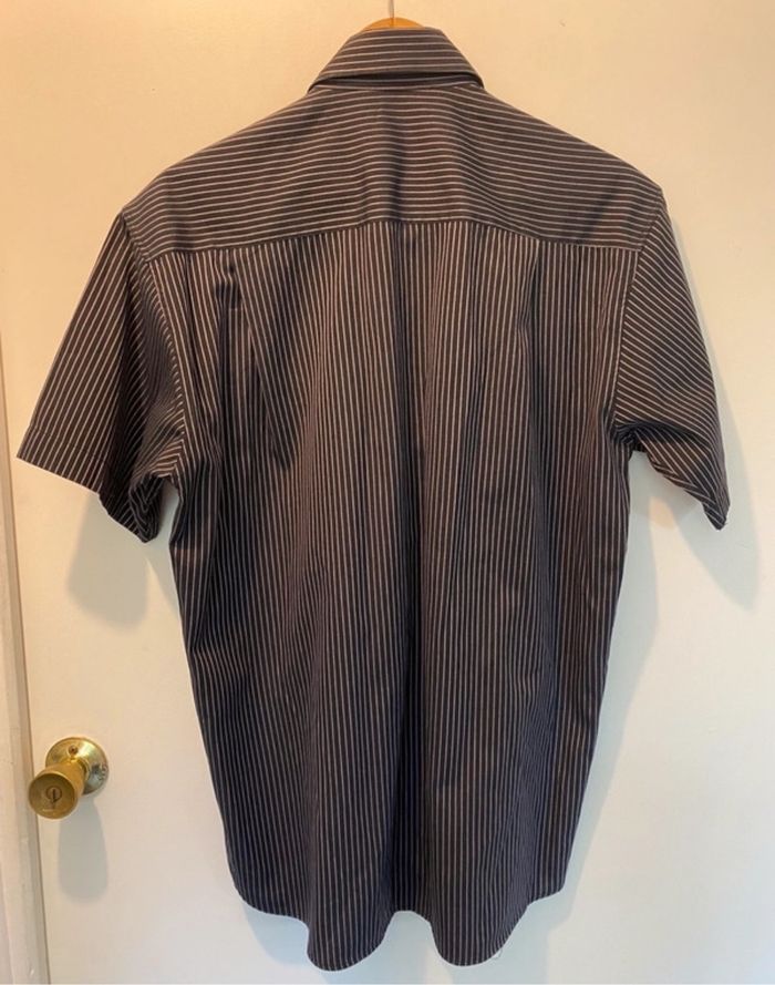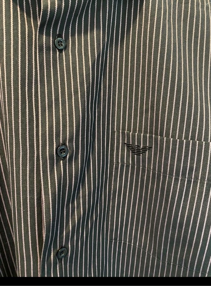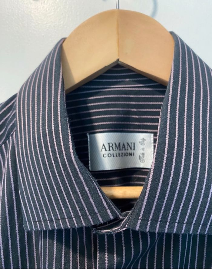 Chemise manches courtes ARMANI parfaite pour un look chic et décontracté cet été. 👔Marque : Armani 📌 Taille : L 🎨 Couleur : Noir avec rayures violettes élégantes 🏷️ Détails : Logo Armani brodé sur la poitrine 📐 Dimensions : 61 cm d’aisselle à aisselle 📌 Origine : Collection Italie 🇮🇹 ✅État : Très bon état
