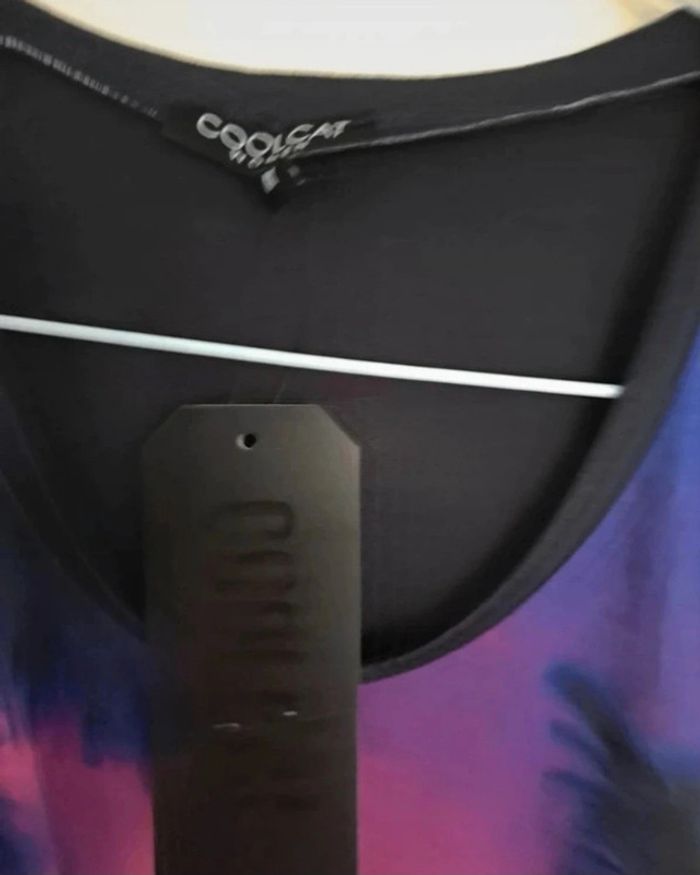 Long top avec motifs genre New York. Côtés en parties avec croisements. Noir derrière. Taille M, Coolcat, neuf avec étiquette. Je le vends au prix de 12 euros. #TailleM38marine