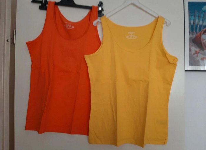 Lot de deux débardeurs Primark taille L. Un jaune et un orange. Pas portés. Je le vends au prix de 8 euros. #TailleL40marine