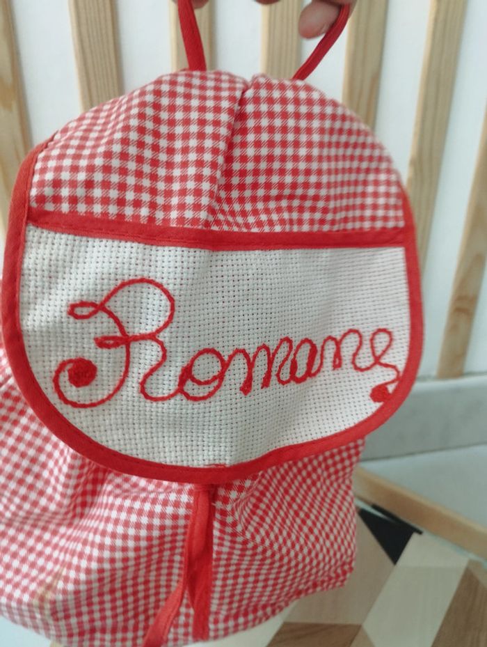 Petit sac a dos en tissu . Fermeture par cordons. Vichy rouge . Parfait état comme neuf . Personnalisé ROMANE . Idéal pour mettre le doudou tutu et un petit biberon . A vendre 15€ --------------------------- ✏️Informations générales ✏️ 📩Expédition dans la journée en général -hors weekend. 🚭Maison non fumeur / sans animaux 📅Pas de réservation 📸Pas de photo porté 👛 Bon plan Envoi à 99ct (+20% récupéré en bon d'achat) possible uniquement pour les français- me contacter pour plus d'infos 😉 #alfaagainaccessoiresfille