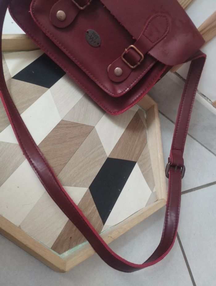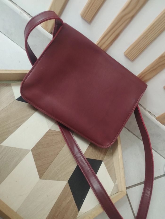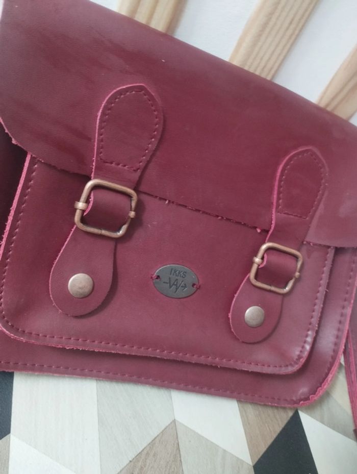Joli sac en simili cuir couleur bordeaux . Coupe rectangulaire. Fermeture aimantée . Très bon état . Seul défaut : restant d'écriture sur l'intérieur . Sangle réglable . Marque IKKS A vendre 10€ --------------------------- ✏️Informations générales ✏️ 📩Expédition dans la journée en général -hors weekend. 🚭Maison non fumeur / sans animaux 📅Pas de réservation 📸Pas de photo porté 👛 Bon plan Envoi à 99ct (+20% récupéré en bon d'achat) possible uniquement pour les français- me contacter pour plus d'infos 😉 #alfaagainaccessoiresfille #ikks