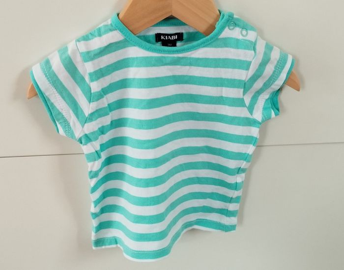 Bonjour, Je vends ce t-shirt MC pour garçon en taille 3 mois de la marque Kiabi en très bon état