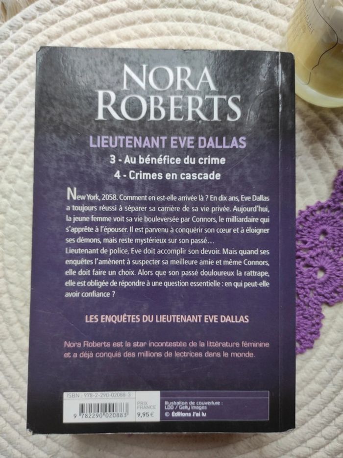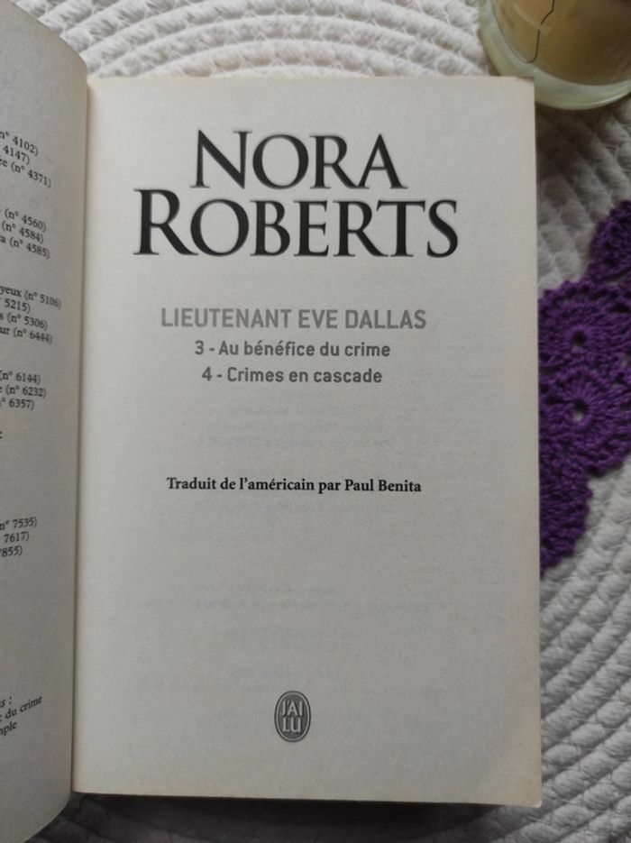 Livre très bon état comprenant deux histoires du Lieutenant Eve Dallas 3 - au bénéfice du crime 4 - crimes en cascade #stitch7438_roman #norarobertsroman #noraroberts #lieutenantevedallas