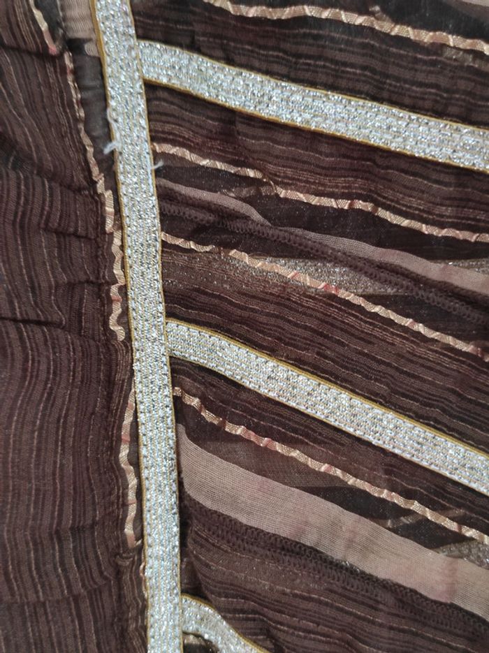 Magnifique bustier couleur marron, doré et argenté Fermeture éclair sur le côté sur tout la hauteur ouverture du bas vers le haut 2 tiges gainage verticale le long de la bande argenté État neuf, porte 1 ou 2 fois #stitch7438_vêtements_femme_38/M #bustierxanaka #bustier38femme #bustier38