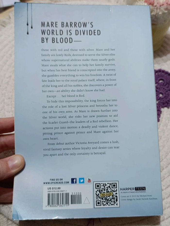 Mare Barrow, dix-sept ans, tente de survivre dans une société qui la traite comme une moins que rien. Quand elle s'avère détenir des pouvoirs magiques dont elle ignorait l'existence, sa vie change du tout au tout. Enfermée dans le palais de la famille royale, promise à un prince, elle va devoir apprendre à déjouer les intrigues de la cour, à maîtriser un pouvoir qui la dépasse, et à reconnaître ses ennemis.