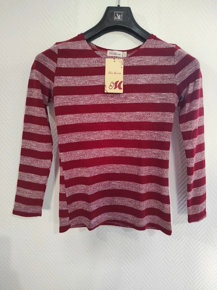Pull fin rayé chiné bordeau lizhen taille L - photo numéro 1
