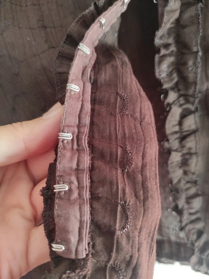 Magnifique chemisier marron avec motifs ajourés et col en V Manches 3/4 froncé (mais non resserré) Fermeture sur l'avant avec crochets Excellent état Retrouvez mes autres annonces par ici 👉 #stitch7438_vêtements_femme_40/L #chemisierxanaka40 #xanaka40 #chemisier40femme #chemisier40 #chemisiermarron40
