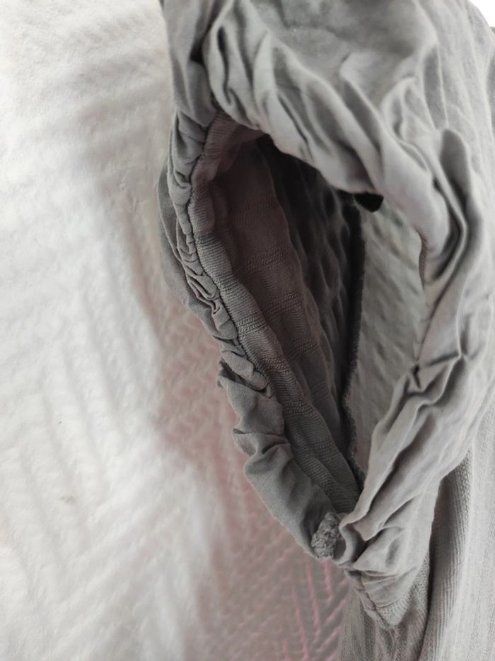 Très chouette haut avec froncage sur le devant grâce au laçage. Manches froncées également. Bas dentellé de petites vagues. Très bon état #stitch7438_vêtements_femme_38/M #stitch7438_vêtements_femme_40/L #promod38