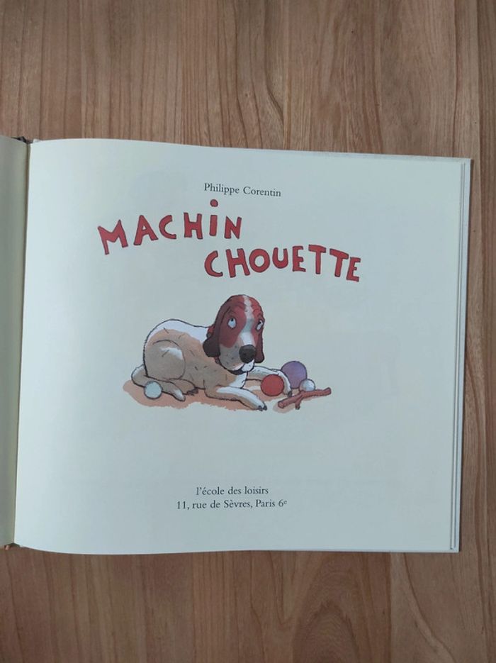 Machin Chouette, c'est le nom d'un chien. Un chien un peu nigaud qui ne sait que faire le beau, donner la papatte et rattraper la baballe. Ce chien ne sait pas se tenir à table, il est grossier et il occupe régulièrement la meilleure place du salon : le fauteuil. Quelle honte ! Ce chien n'est qu'un imbécile ! PS : cette histoire est entièrement racontée du point de vue du chat... Age 6/8 ans Excellent état Couverture cartonnée, pages papier brut #stitch7438_livres_enfants #livreenfant #machinchouette