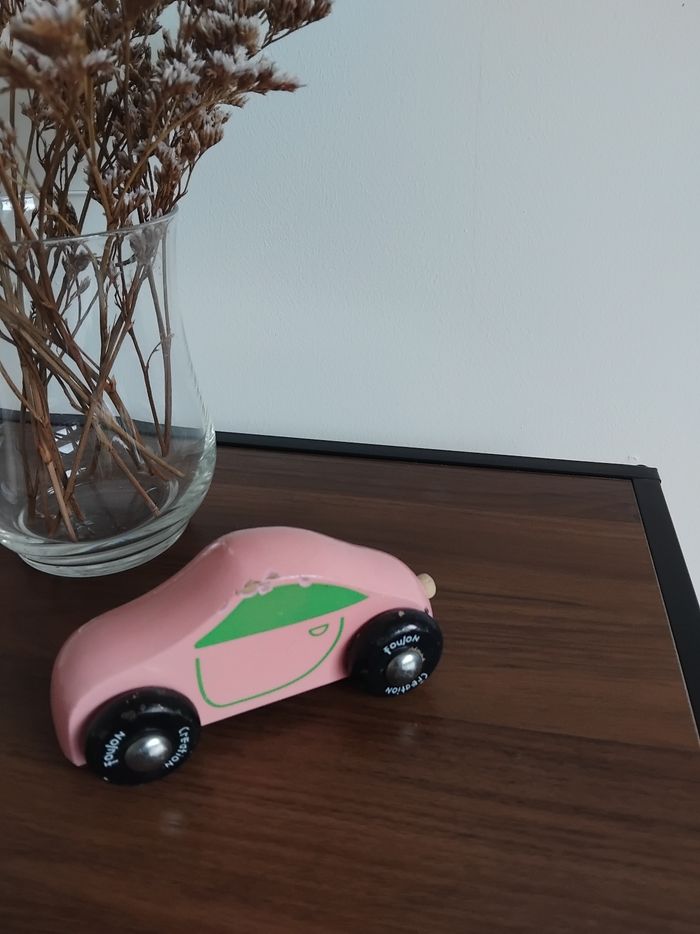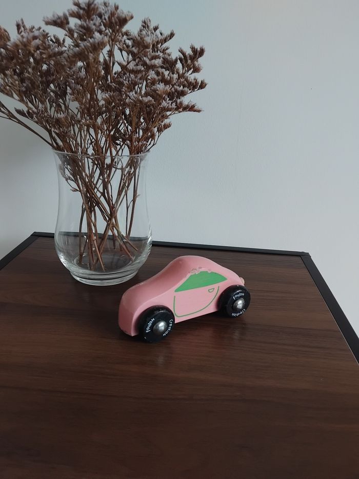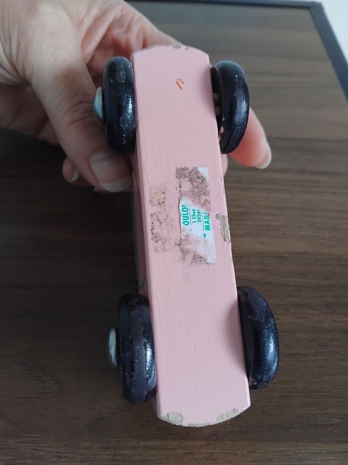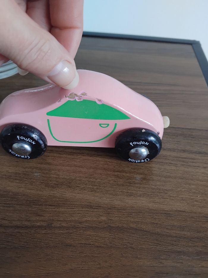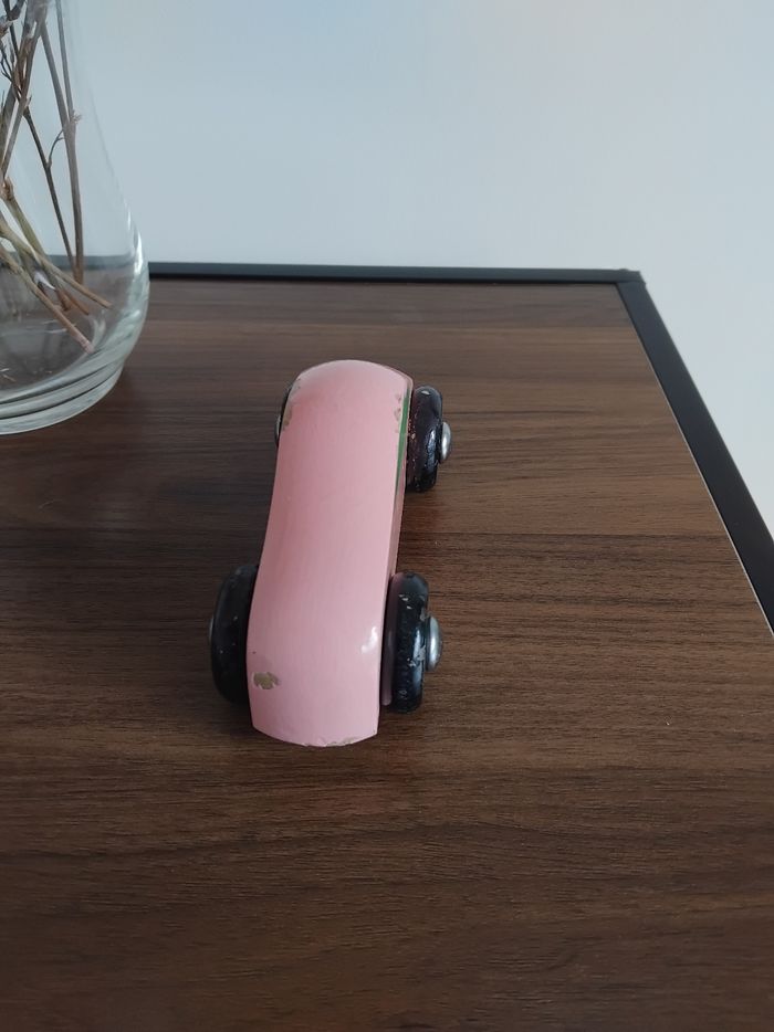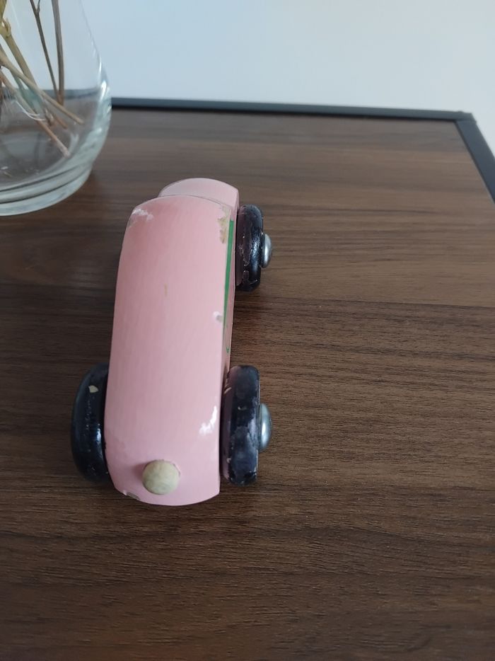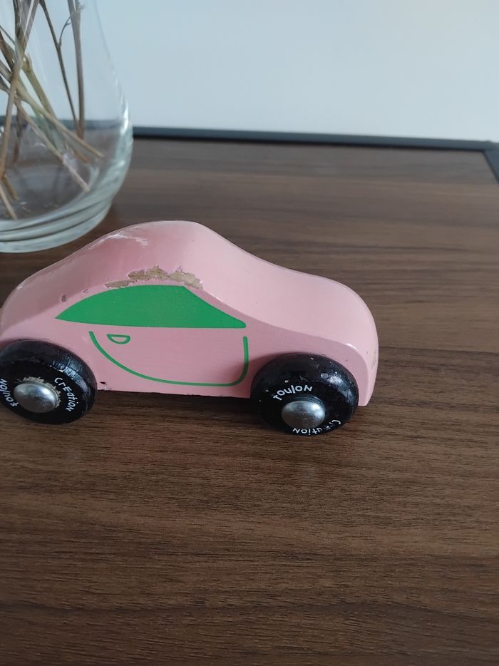 Voiture en bois pour enfant. De couleur rose. Présente quelques traces d usures voir photos. La voiture à du mal à rouler. #joueteducatifnade3033 #jouetenfantnade3033 #jouetenfantnade3033