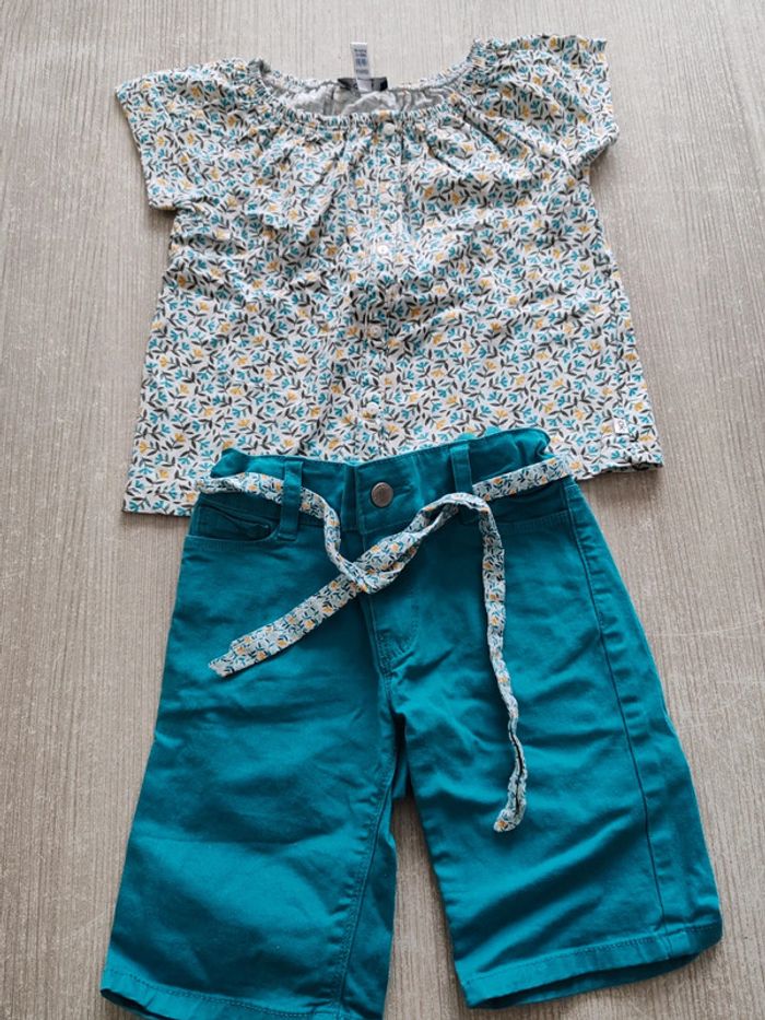Ensemble marque Okaïdi Taille 4 ans Couleur bleu Tee-shirt+ pantacourt+ ceinture #4ansfillecyriellev14