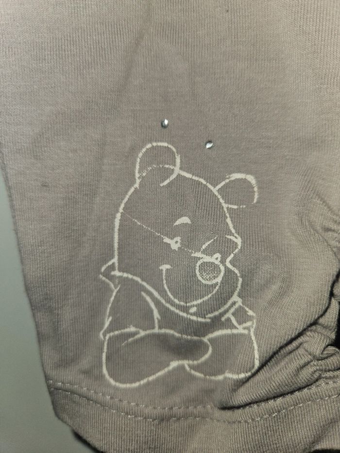 Legging en bon état, taille 23 mois. Couleur gris taupe avec un dessin de Winnie l’Ourson sur la jambe. ⚠️ Manque quelques petits brillants sur le dessin (visible sur photos). Vous pouvez les retirer 😅 Marque : Disney Baby Beaucoup porté mais pas de tache ni trou